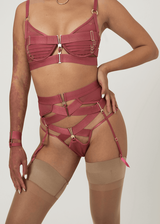 Characterised by decadent playfulness, provocative style, and a pro-kink attitude for the unconventional soul. Lavish satin elastic, delicious mesh and gorgeous gold hardware are designed to be seen. Exclusive creations crafted to be fully adjustable with easy-sizing ensure a perfect inclusive fit for everybody and every occasion.