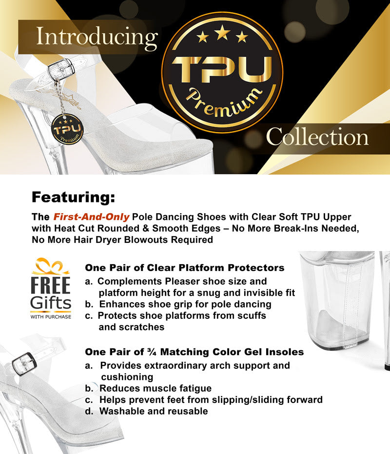 This Pleaser "TPU Premium" Style Comes with a Pair of Replaceable Matching Color Insoles and a Pair of Clear Platform Protectors.